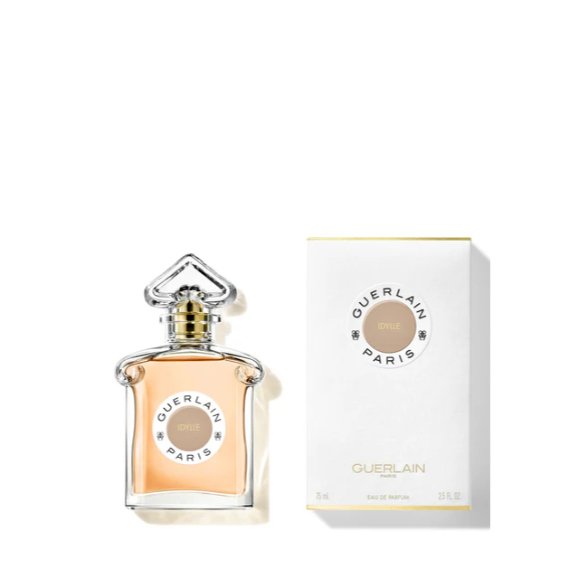 Idylle opens with a shower of flowers that combine in a fresh and joyful bouquet featuring lily of the valley accord, peony, freesia and white lilac. The heart of the fragrance reveals jasmine paired with a “communelle” of Bulgarian roses (a blend of different batches of essence.
